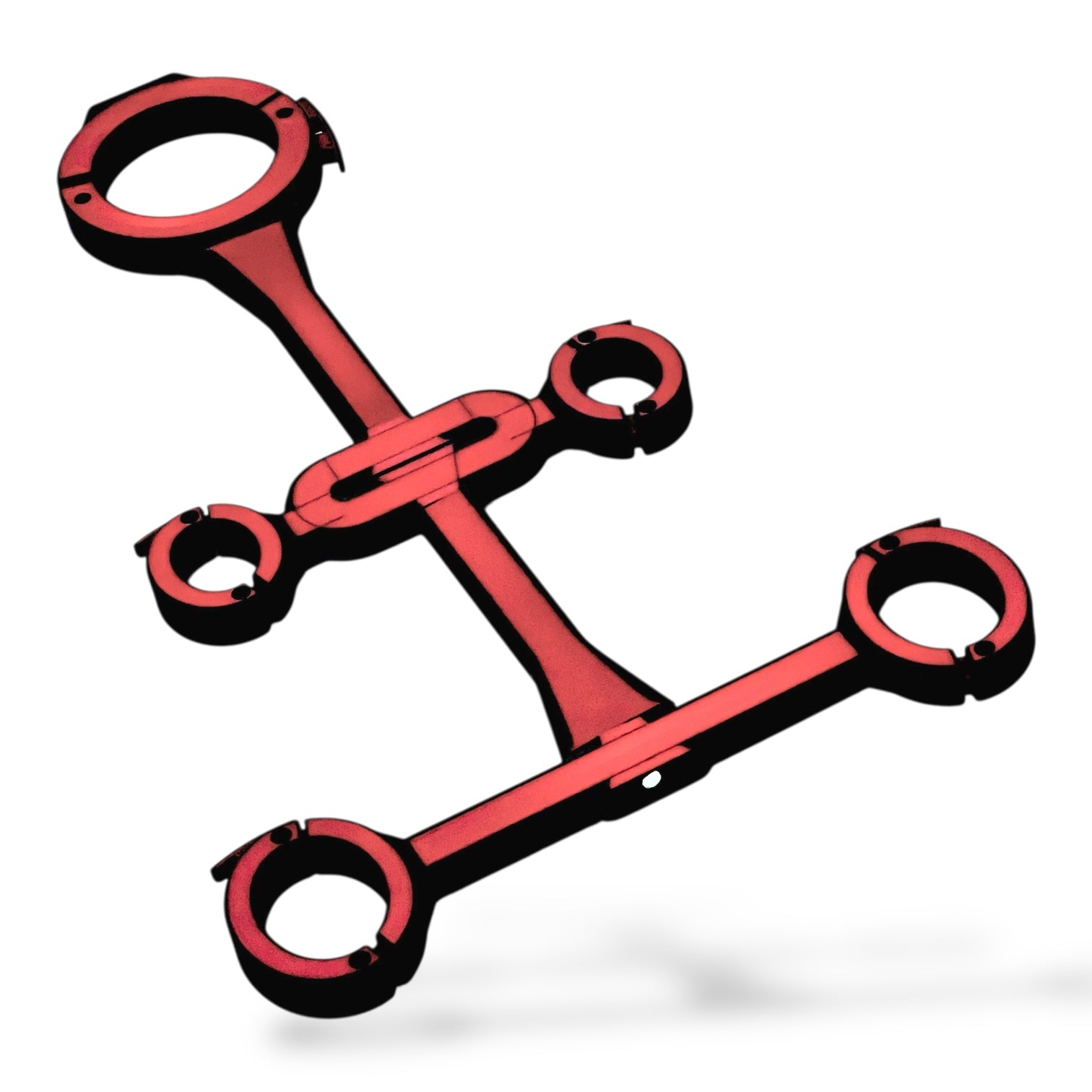 • bis hin zu Hogtie-System, Storch, Spreizstange sowie Ketten- und Rohradaptern, mit denen du dich ans Bett, an die Wand oder an die Decke bringen kannst 😈